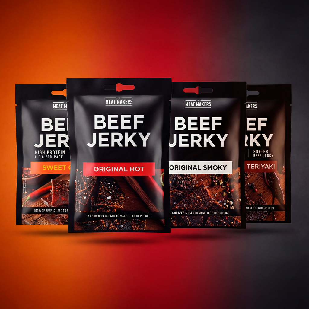 SNACK PACK - BUNDLE COMPLETO - 4 PACKS 9,18 € 10,20 € Desconto de %. IVA incluído. Partilhar Comprar Contactar Portes Grátis em encomendas superiores a 45 € para Portugal Continental. 75 € para Ilhas, 100 € para Espanha. 1 x SWEET CHILLI | SOFTER BEEF JERKY 25g 1 x TERIYAKI | SOFTER BEEF JERKY 25g 1 x ORIGINAL SMOKY | SOFTER BEEF JERKY 25g 1 x ORIGINAL HOT | SOFTER BEEF JERKY 25g https://www.themeatmakers.pt/ Marca The Meat Makers Características
